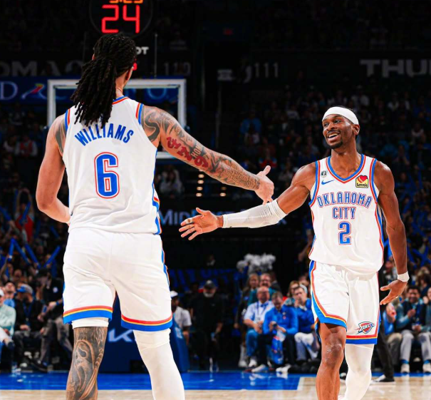 卫冕冠军雷霆在二当家杰伦威廉姆斯本赛季伤病不断的情况下,在MVP亚历山大的率领下,依旧打出了极具统治力的表现,在上一场常规赛以36分的优势血洗洛杉矶湖人之后,已经取得了一波六连胜,在西部积分榜上领跑。